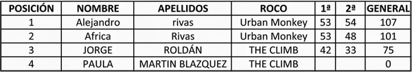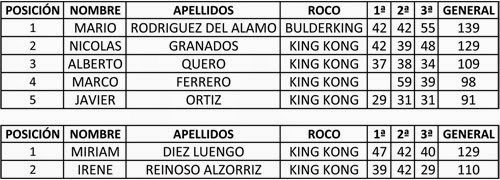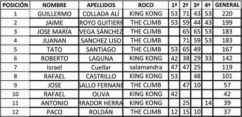 Clasificación 4ª prueba MBT 2014/15 en Bulderking