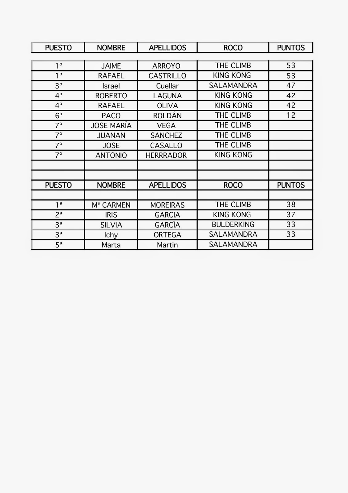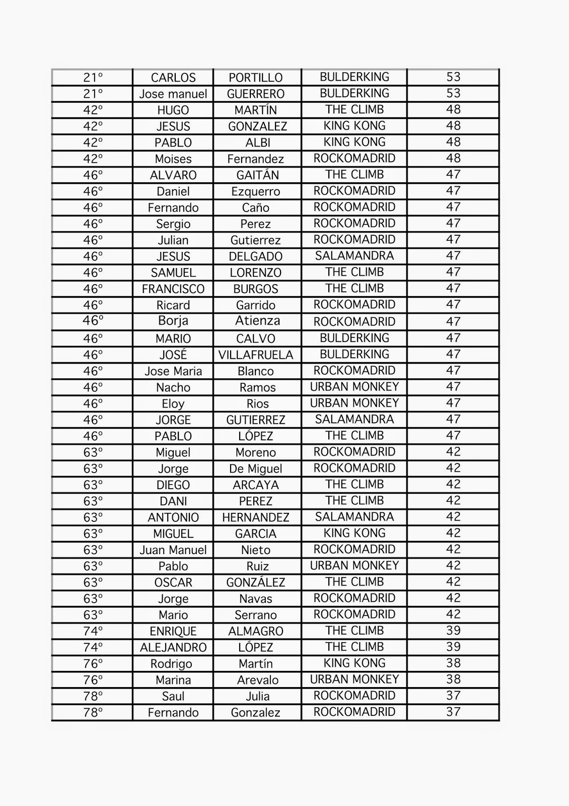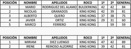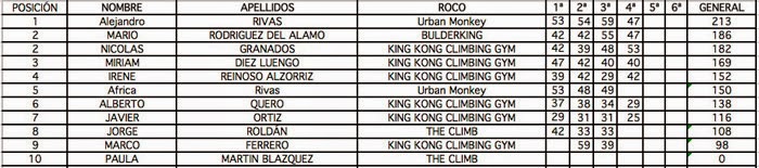Clasificación completa 2ª Prueba de la Madrid Boulder Tour en Rockomadrid