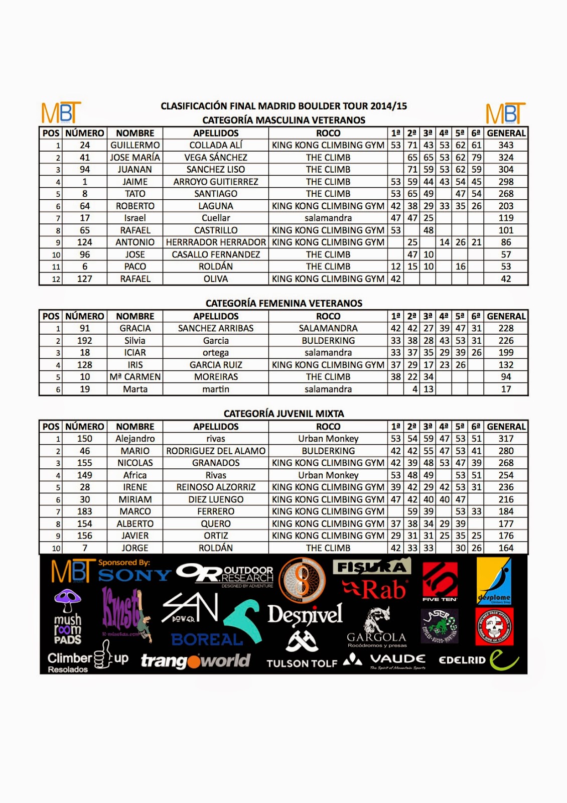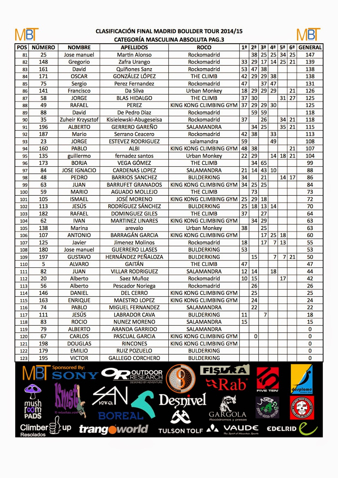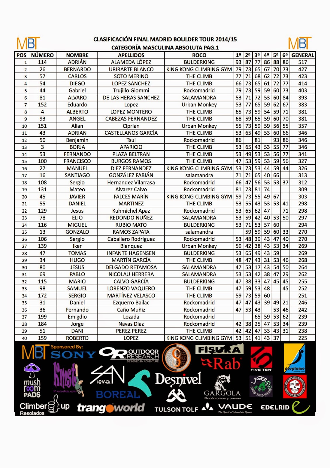 Clasificación 1ª prueba MBT 2014/15 en RockoMadrid
